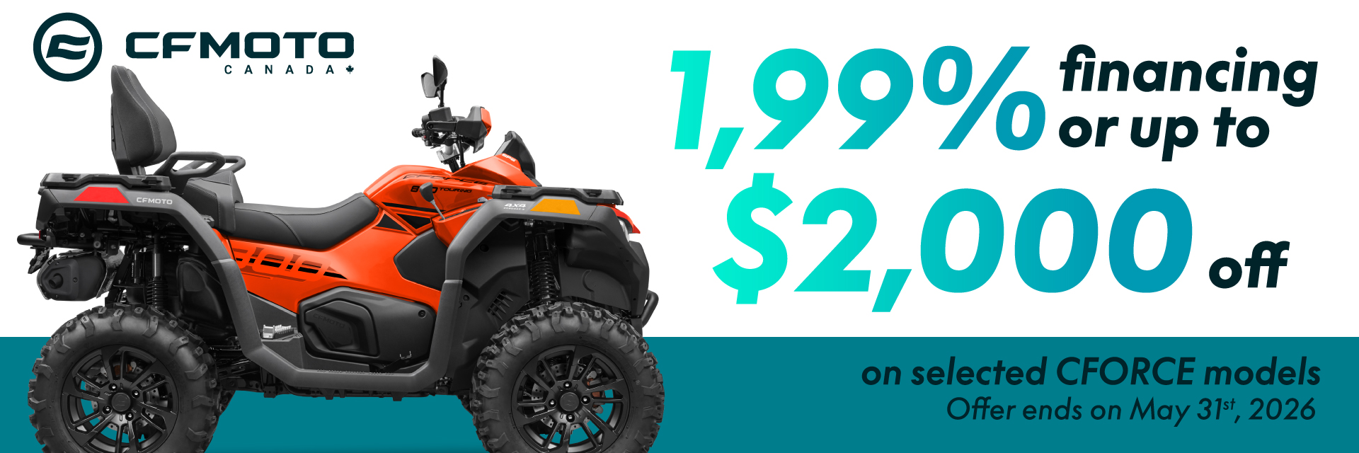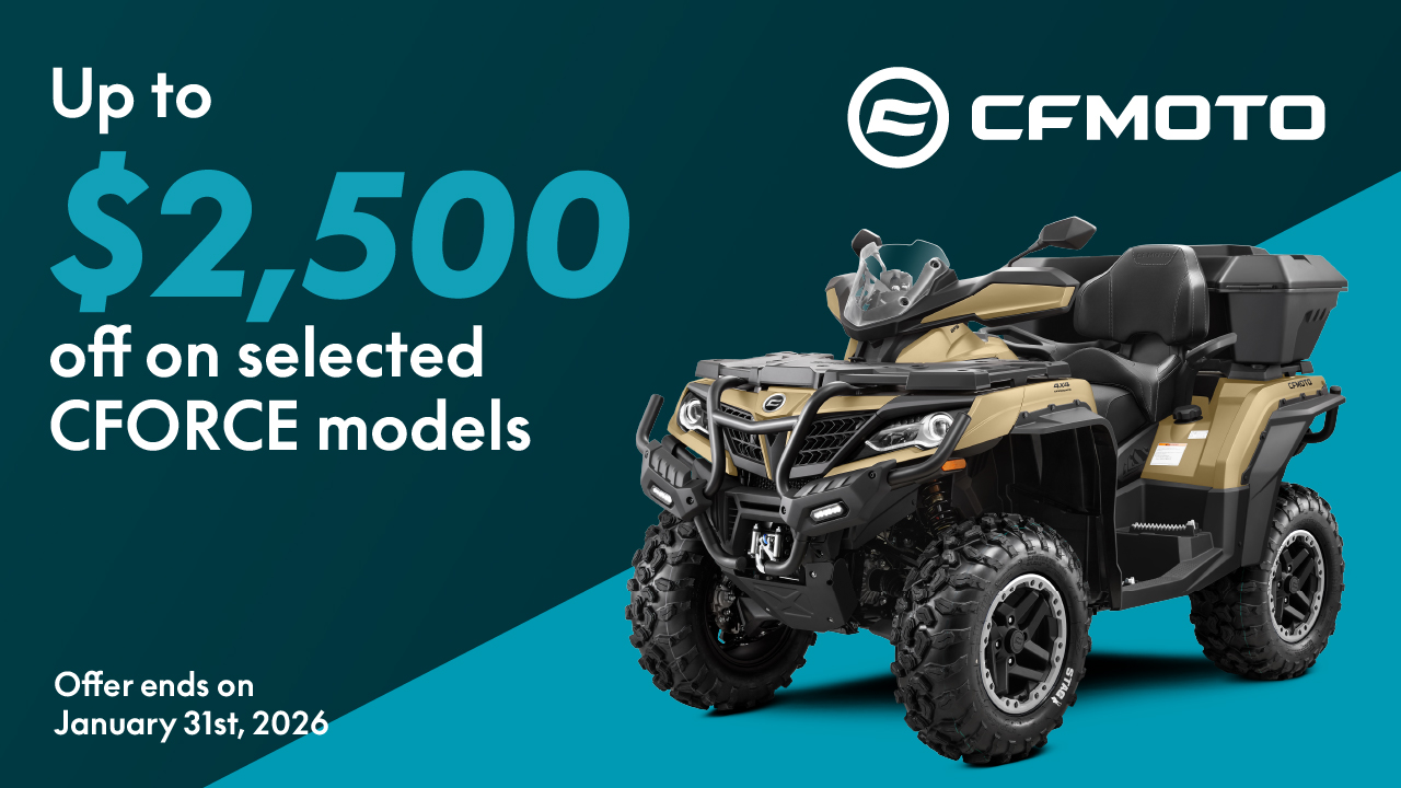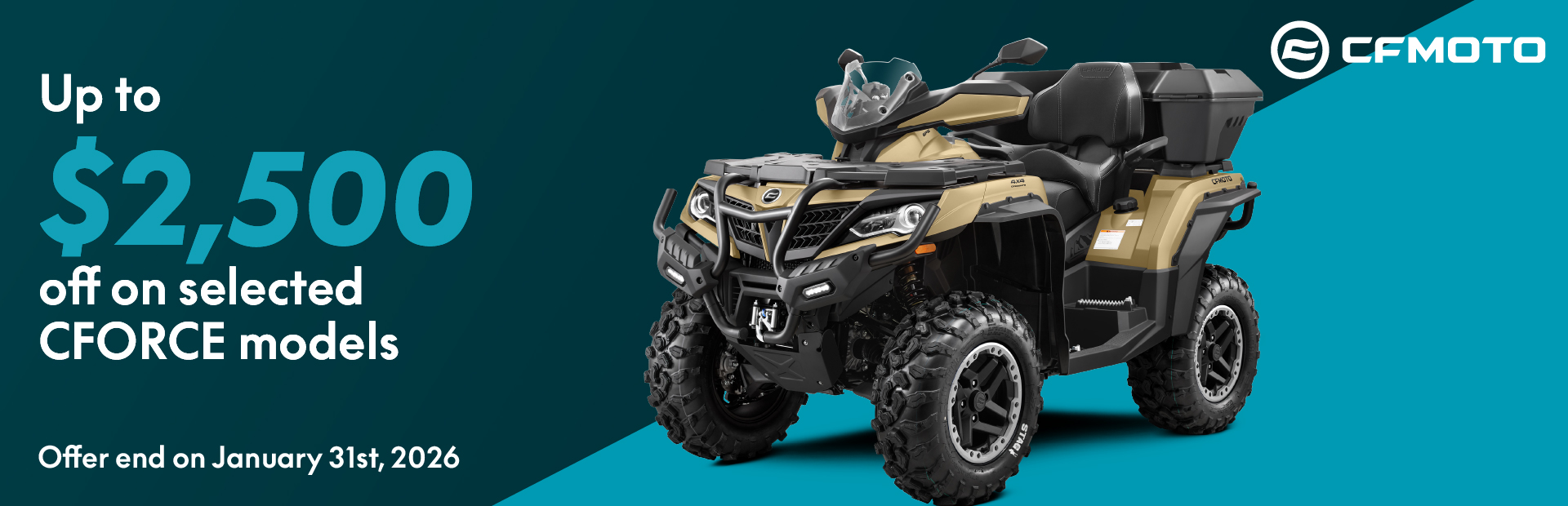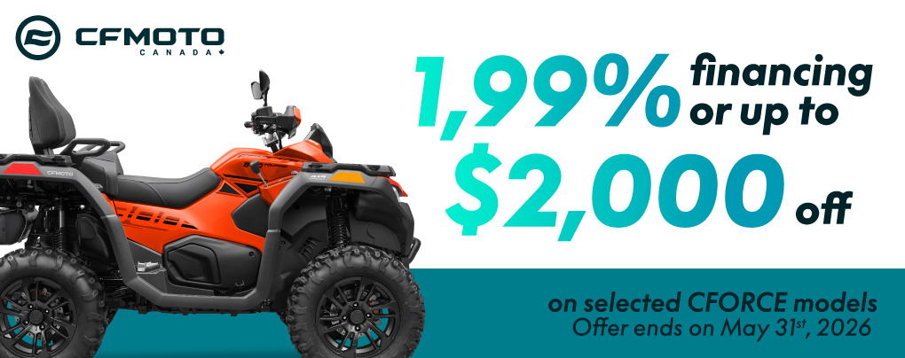 CFMOTO Canada’s standard 5-year warranty includes a 12-month manufacturer limited warranty and a 48-month powertrain limited warranty.