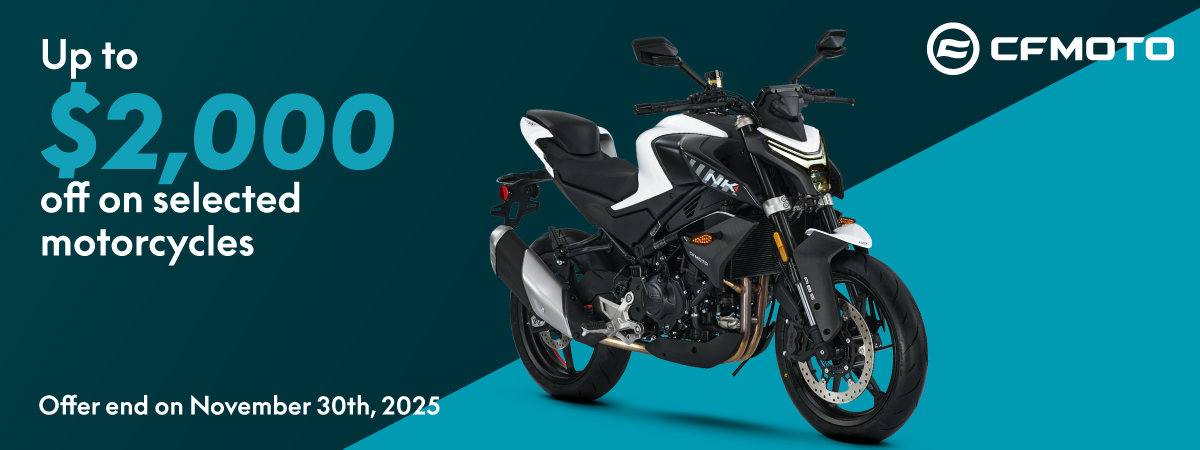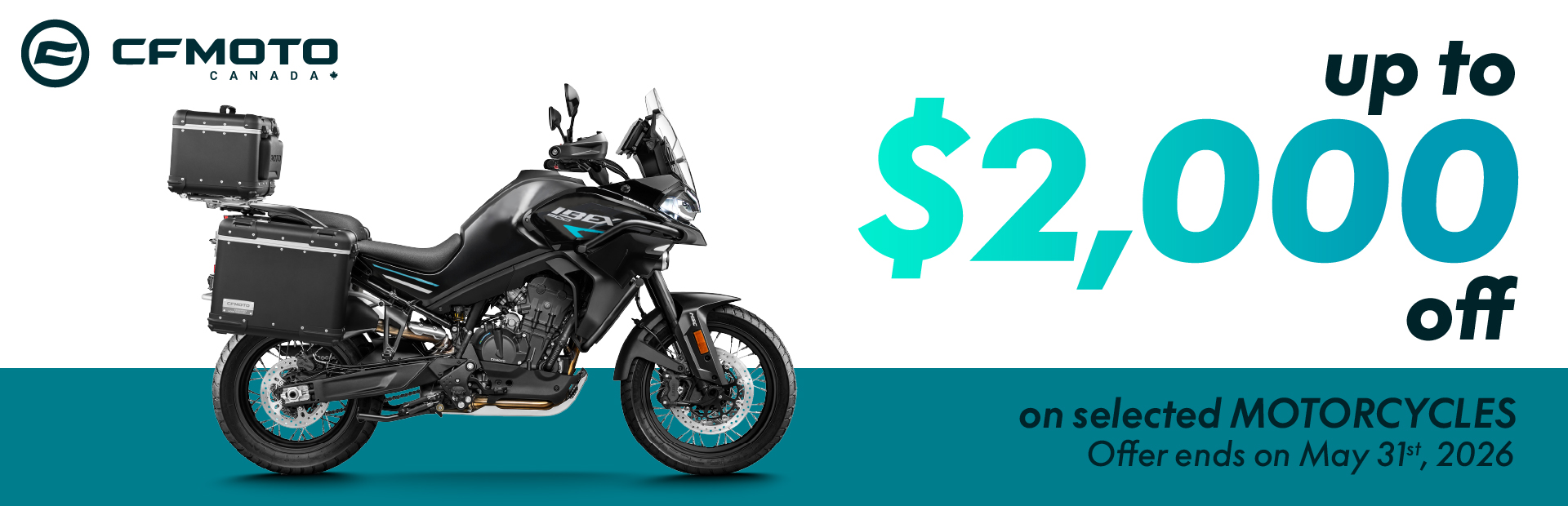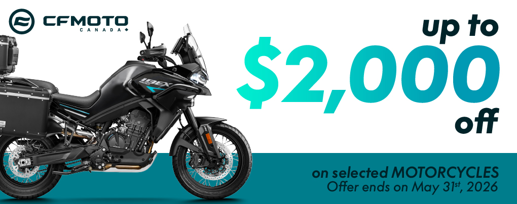 CFMOTO Canada’s standard 5-year warranty includes a 12-month manufacturer limited warranty and a 48-month powertrain limited warranty.