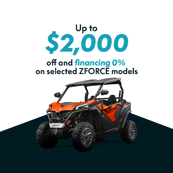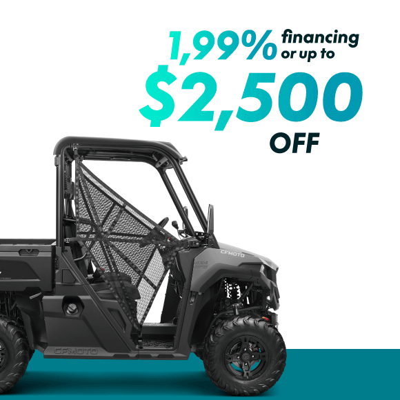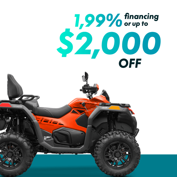 Discover CFMOTO rebates and financing offers on ATVs, side-by-sides, UTVs, and motorcycles. Get our best offers on our vehicles now!