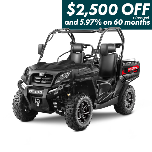 This offer is not transferable, not redeemable for cash or a gift card. Other conditions and restrictions may apply. The terms and conditions may vary depending on the province, and these offers are subject to termination or change at any time without notice. See your CFMOTO dealer for more details.