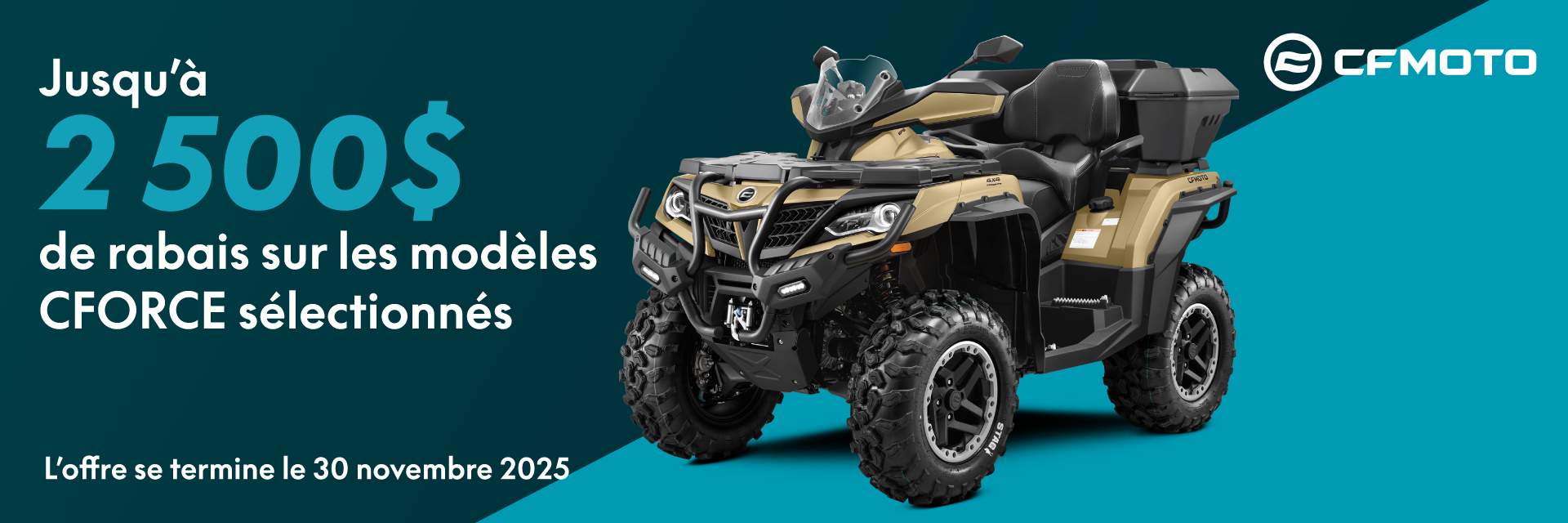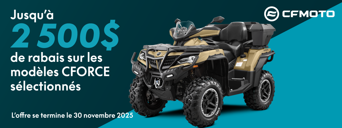 La garantie standard CFMOTO Canada de 5 ans comprend 12 mois de garantie limitée du manufacturier ainsi que 48 mois de garantie limitée du groupe motopropulseur.