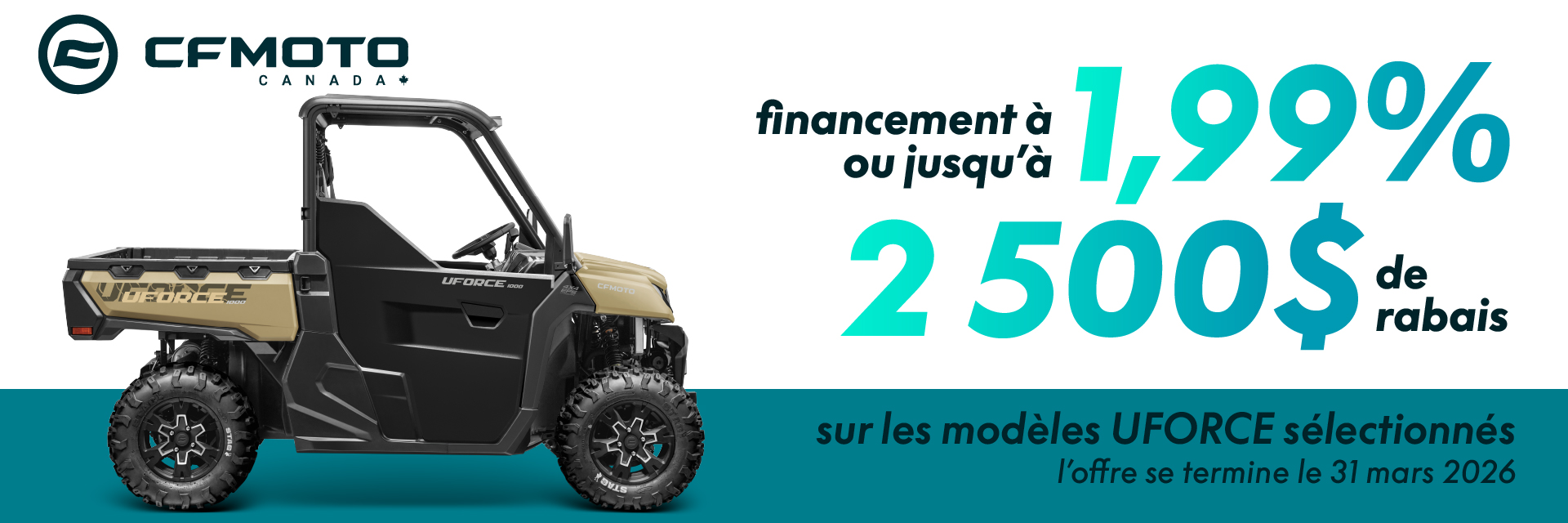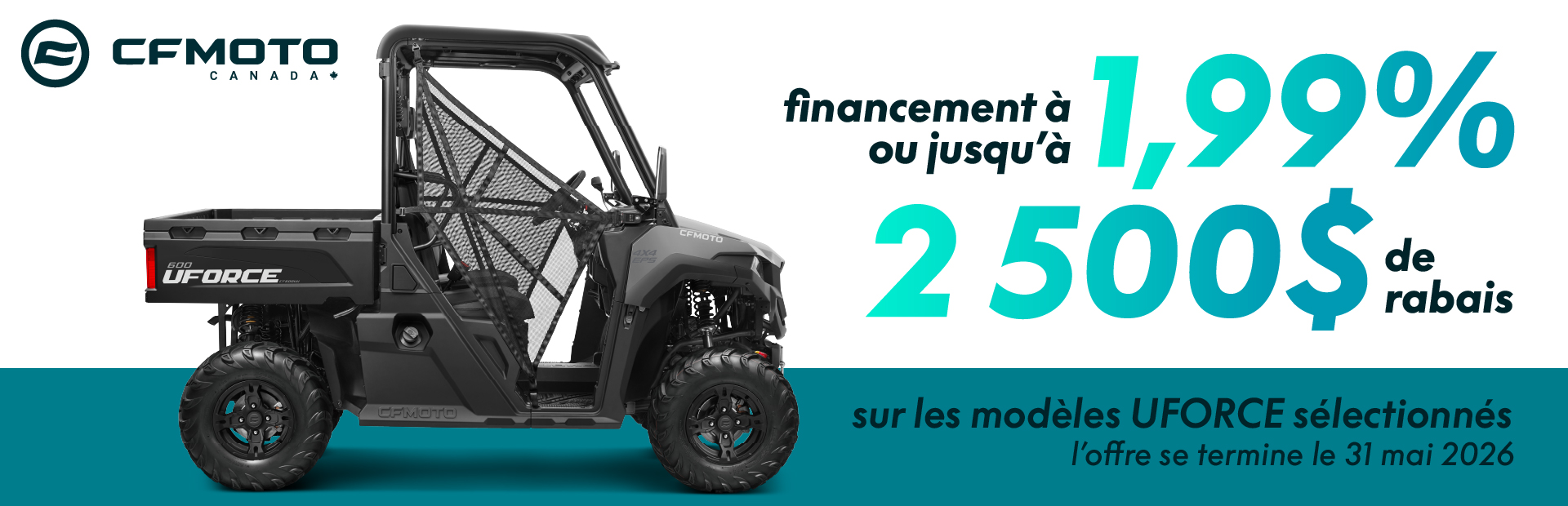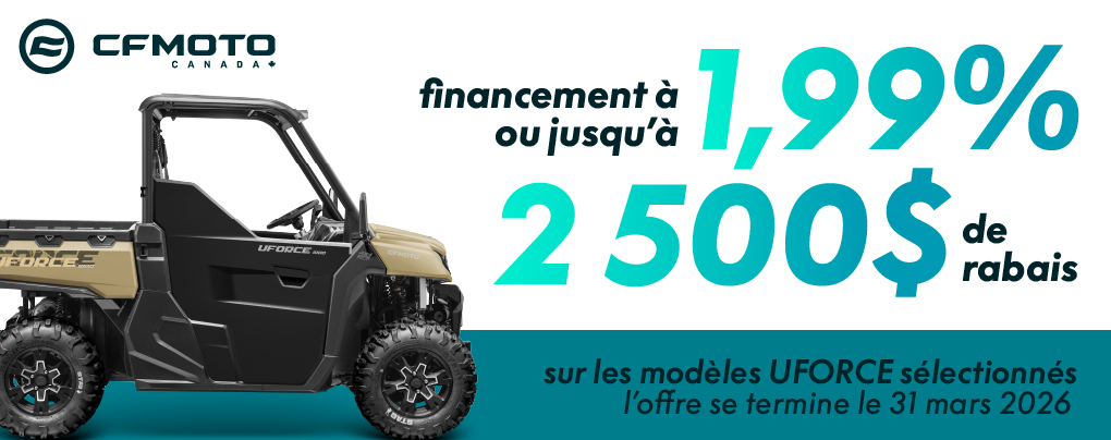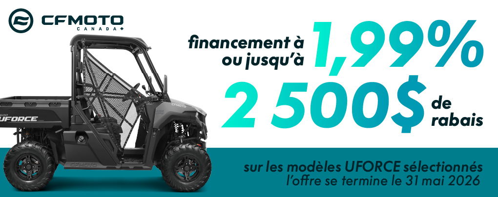 La garantie standard CFMOTO Canada de 5 ans comprend 12 mois de garantie limitée du manufacturier ainsi que 48 mois de garantie limitée du groupe motopropulseur.