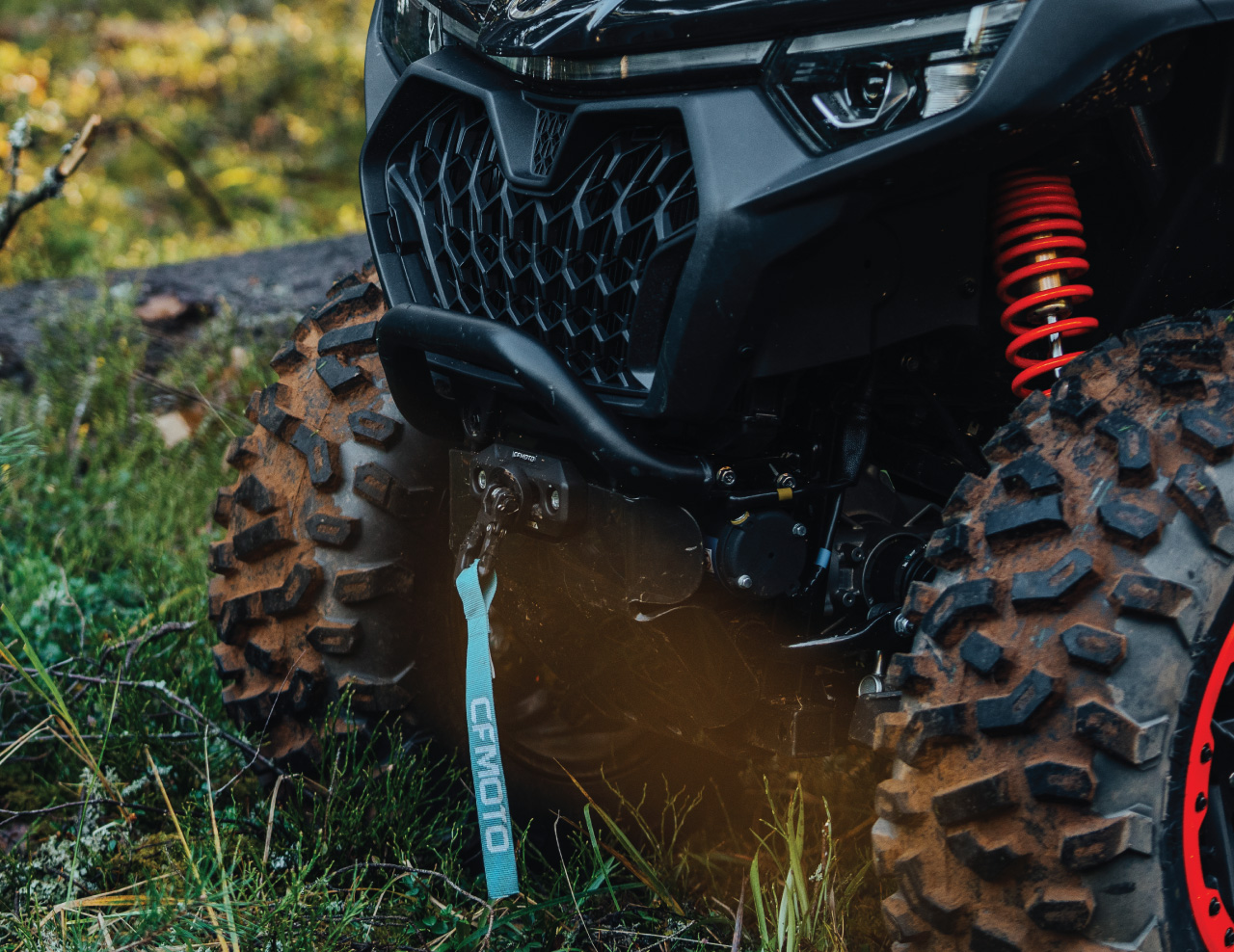 Il s'agit du premier modèle CFMOTO doté d'une cabine fermée et de la climatisation. Profitez du pare-brise avant inclinable pour vos aventures de chasse et des portes avec vitres électriques.
