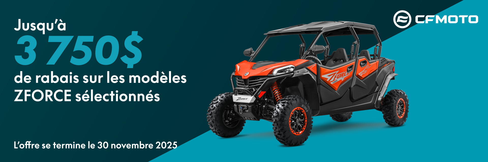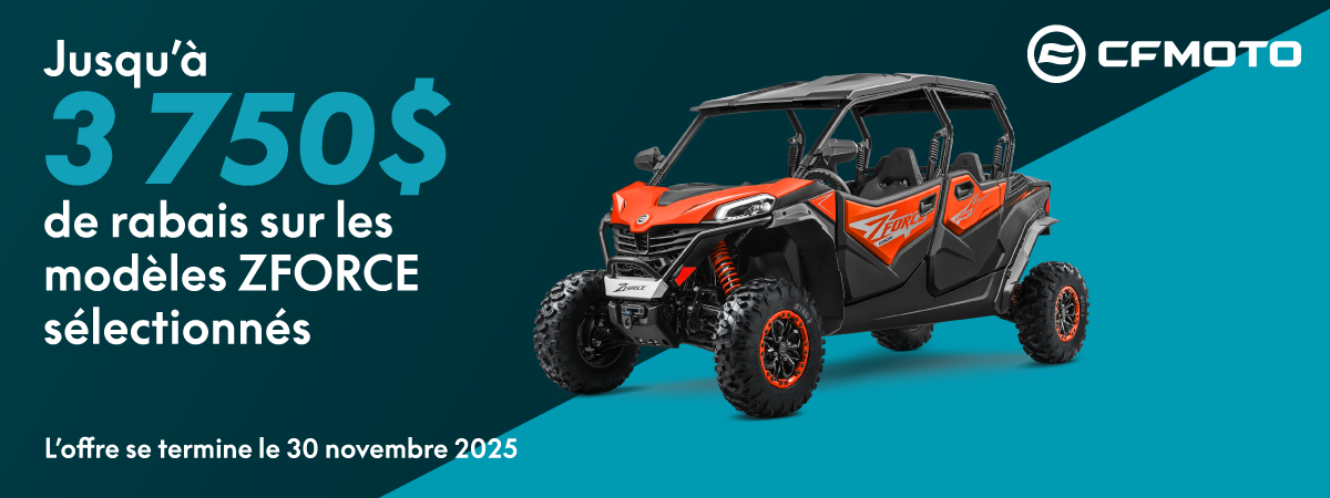 La garantie standard CFMOTO Canada de 5 ans comprend 12 mois de garantie limitée du manufacturier ainsi que 48 mois de garantie limitée du groupe motopropulseur.