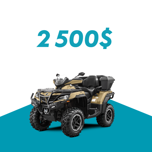 Découvrez les rabais et les offres de financement sur les VTT, les véhicules côte-à-côte, les UTV et les motos CFMOTO. Bénéficiez de nos meilleures offres sur nos véhicules dès maintenant!